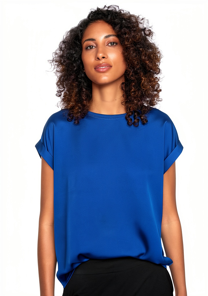 Questa T-shirt è ideale per occasioni casual come uscite con amici, lavoro da ufficio informale o momenti di relax. Il materiale in raso la rende adatta per tutte le stagioni, offrendo un look sofisticato senza sacrificare il comfort. Perfetta per donne che apprezzano un abbigliamento versatile e alla moda.