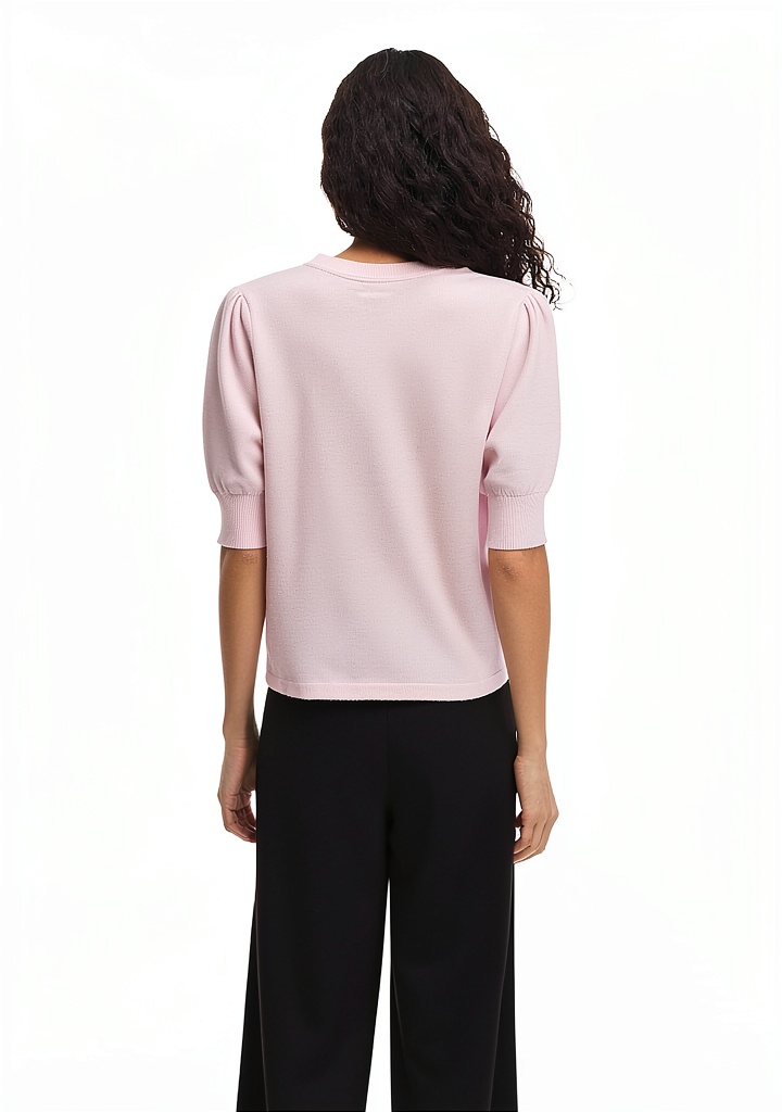 Il top è realizzato in maglia di alta qualità, garantendo morbidezza e resistenza nel tempo.