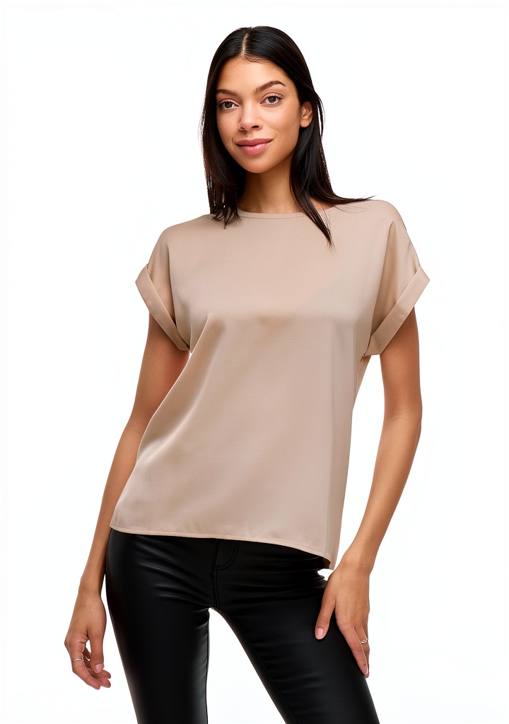 Il top Vila in satin presenta un design raffinato con spalle sovrapposte e scollo rotondo, realizzato interamente in poliestere riciclato per un approccio moda sostenibile. Disponibile in colore Cement e taglie 40 e 50, questo capo unisce eleganza e praticità, con maniche corte che garantiscono massima libertà di movimento. La finitura in satin dona un tocco di lucentezza, ideale per creare outfit versatili e contemporanei.