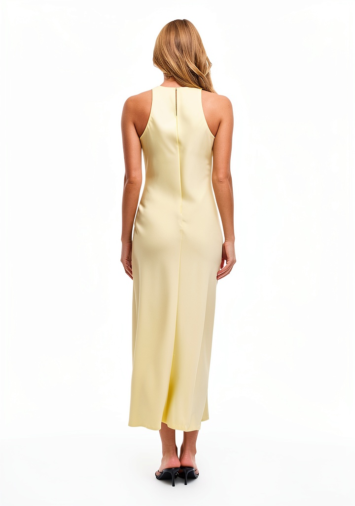 Questo abito è perfetto per occasioni informali come uscite quotidiane, picnic o serate estive, grazie al tessuto leggero che assicura traspirabilità. La lunghezza alla caviglia e il design senza maniche lo rendono versatile per la donna che cerca stile e praticità, adatto a temperature calde e movimenti fluidi. Ideale per chi apprezza un abbigliamento comodo ma raffinato, si abbina facilmente a sandali o accessori minimali per un look completo.