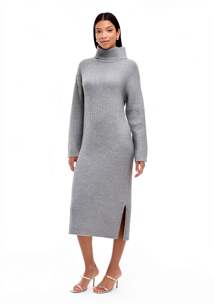 Scopri l’abito midi Vila con collo alto e maniche lunghe, perfetto per look casual eleganti. Realizzato in maglia morbida, disponibile in nero e grigio melange