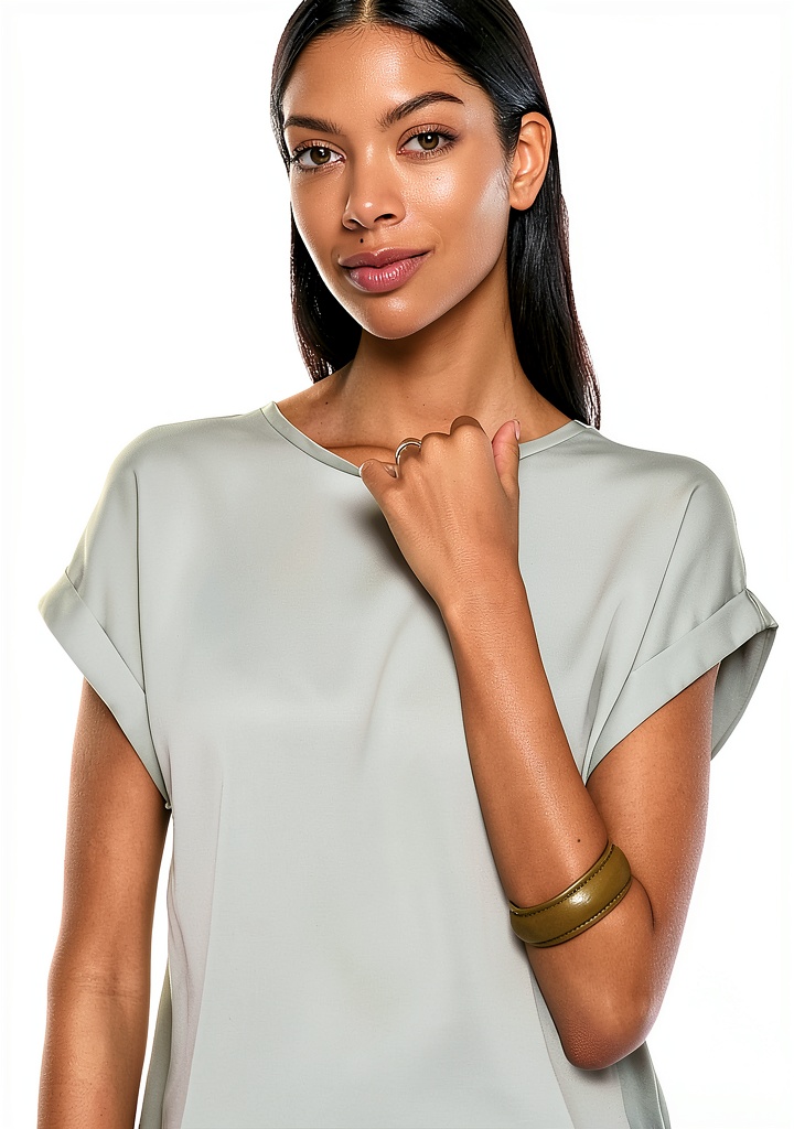 - Design in raso con scollo rotondo per un look elegante e luminoso