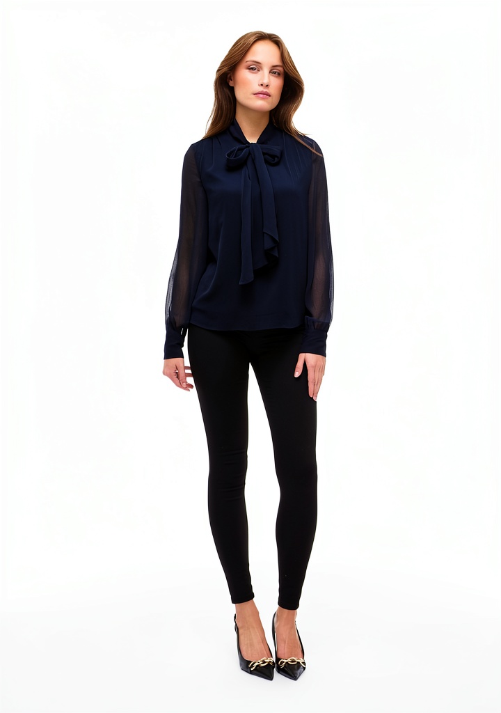 Questo top è perfetto per occasioni formali come riunioni di lavoro, eventi aziendali o cene eleganti, ma si adatta anche a look casual per uscite quotidiane. Grazie al design pulito e alle maniche lunghe, può essere abbinato a giacche, gonne o pantaloni, offrendo versatilità per diverse stagioni. Ideale per donne che apprezzano uno stile classico e senza tempo, si integra facilmente nel guardaroba moderno.