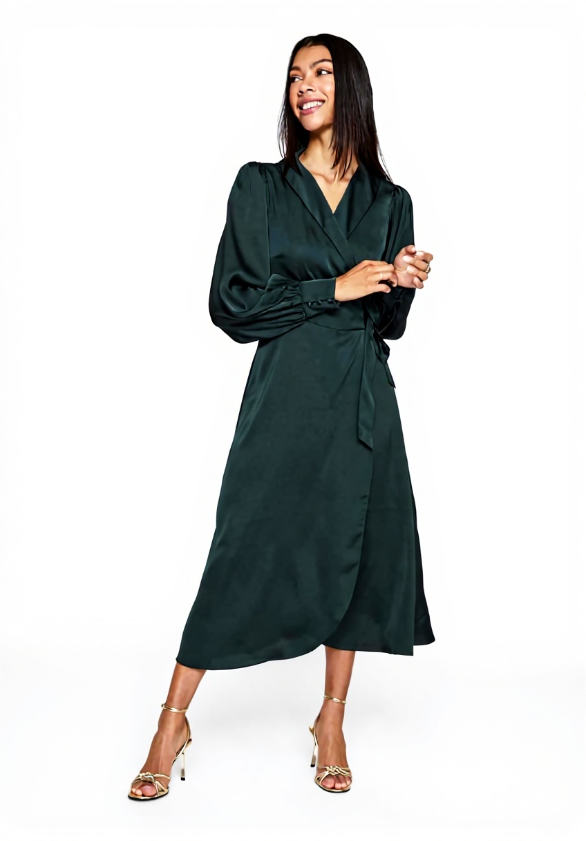 Questo vestito è perfetto per occasioni come cene di gala, matrimoni, feste aziendali e eventi formali dove l’eleganza è fondamentale. Si adatta a donne di tutte le età che desiderano un look raffinato e comodo, grazie al design avvolgente che si adatta al corpo senza costrizioni. L’abito è versatile e può essere abbinato a accessori come scarpe con tacco e gioielli minimali per un effetto ancora più glamour.